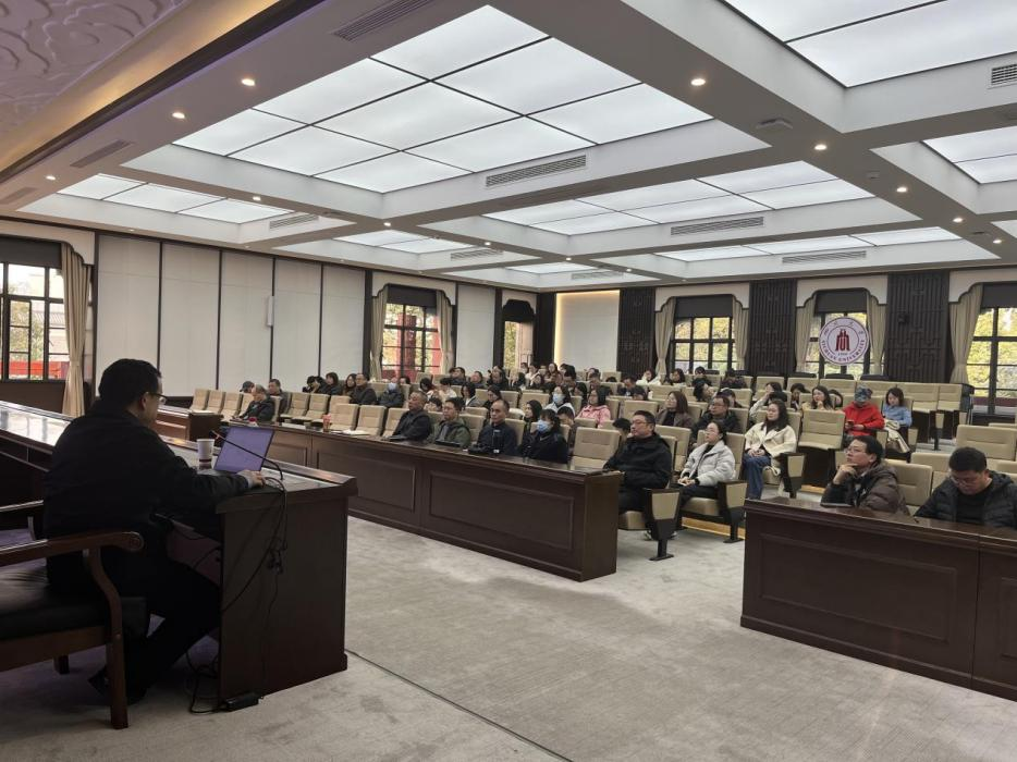 王彤伟教授还结合“十四五”建设成效和“十五五”规划编制,介绍了我校人文社科发展现状与平台建设情况,并重点结合“汉语大字典”修订工作,讲述了文工学科交叉融合的生动实践。